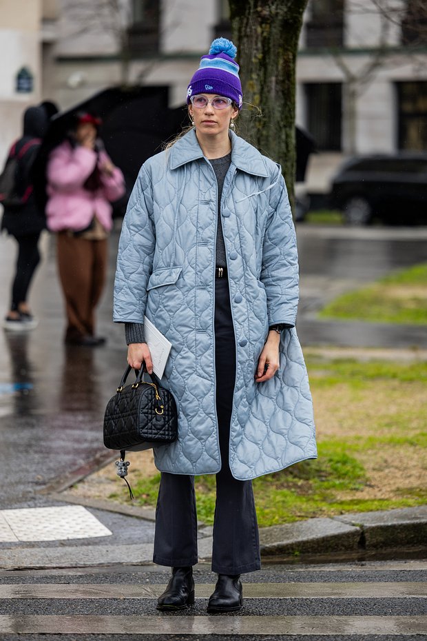 Капор-капюшон можно носить с объемными прямыми пальто и сапогами-трубами на плоском ходу. Если хотите более расслабленный образ, наденьте капор с курткой-паркой.