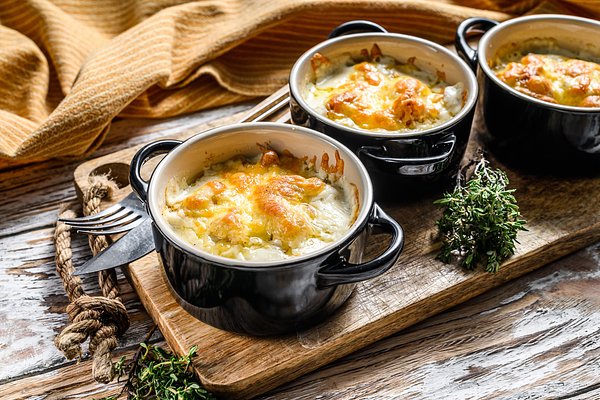 «В отличие от обычной запеканки, соус для жюльена готовят на основе пассеровки из муки и сливочного масла, что придает ему особую бархатистую текстуру. Блюдо готовят и подают в кокотницах — небольших металлических порционных формочках. Это позволяет создать идеальную пропорцию, при которой сверху образуется хрустящая сырная корочка, а начинка внутри равномерно прогревается», — отметил в разговоре с «Лентой.ру» повар ресторана французской кухни La Maison Fleurie Василий Выготский.