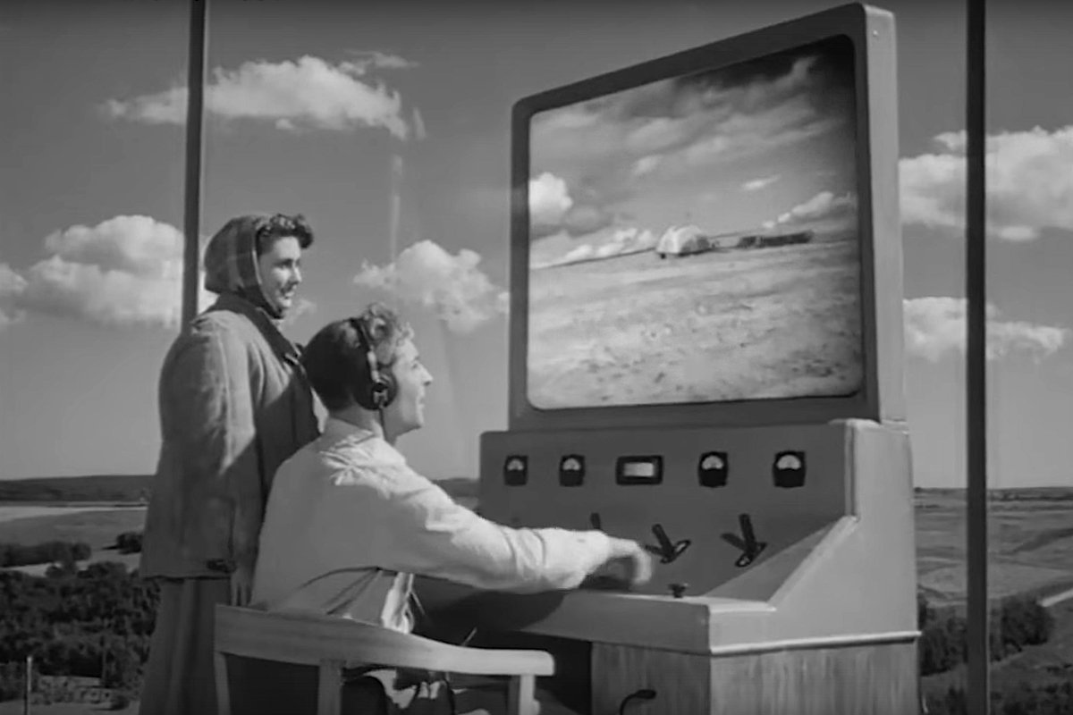 Вопросом дистанционного управления тракторами в СССР как раз занимались в те годы. Но можно при желании увидеть в этой сцене и намек на будущий луноход.