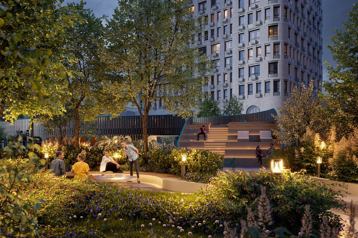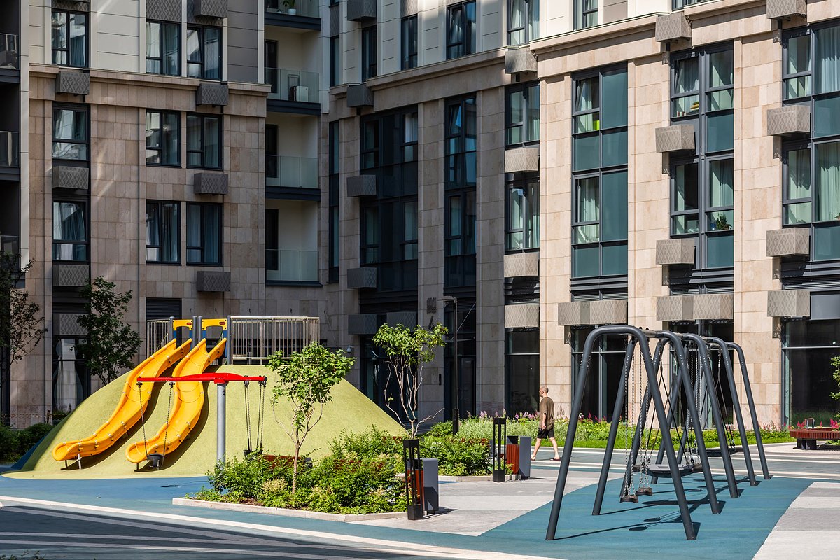 Для отдыха и развлечений у жителей будет собственный закрытый зеленый двор в морском стиле. В его центре — импровизированная палуба со скалодромом, амфитеатром, лекторием и лаунжем с качелями и гамаками. Также во дворе будут инклюзивная детская площадка, зеленые гостиные и воркаут. Концепцией двора занималось опытное бюро Wowhaus, известное москвичам по таким любимым всеми местам отдыха, как парк Горького и Музеон.