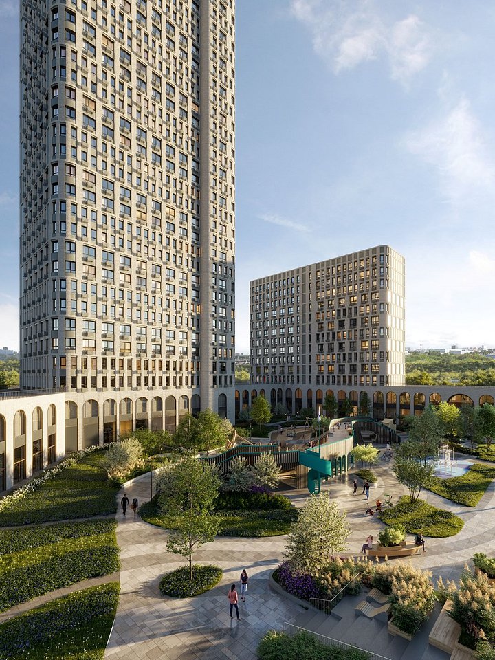 Это масштабный и амбициозный проект под стать самой локации от известного девелопера элитной недвижимости «Галс-Девелопмент». В него войдут три жилых квартала почти на 5000 квартир, закрытые дворы в половину гектара каждый, муниципальные школа и детский сад, пешеходный бульвар с велодорожками. Рядом построят одноименный бизнес-центр с собственной инфраструктурой, которой можно будет пользоваться всем.