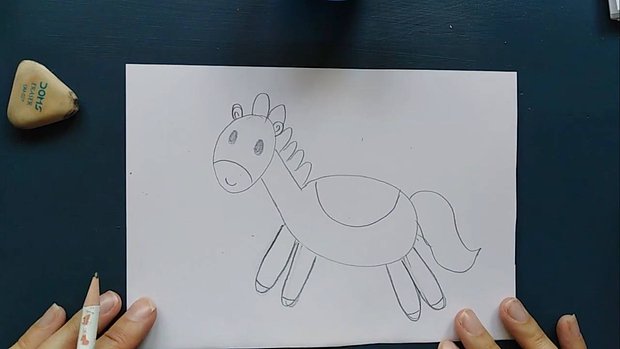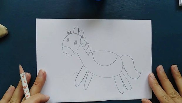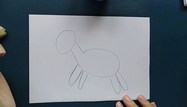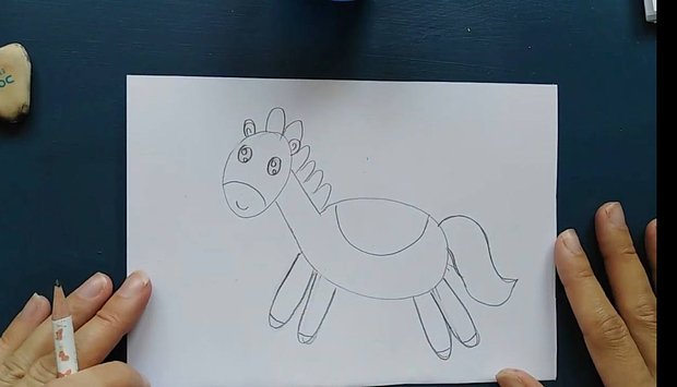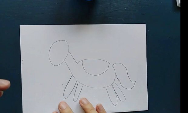 Это самое элементарное изображение коня, которое можно создать вместе с маленьким ребенком.