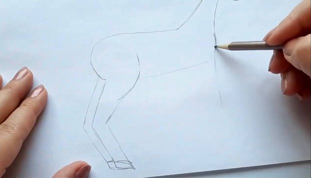 - в конце ноги обозначьте горизонтальной линией копыто;