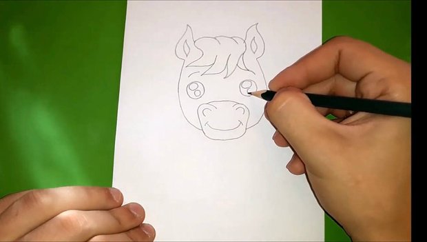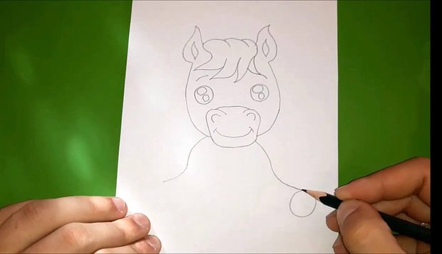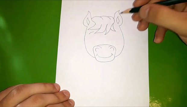 - внизу головы нарисуйте полукруг и рот, чтобы обозначить морду лошади;