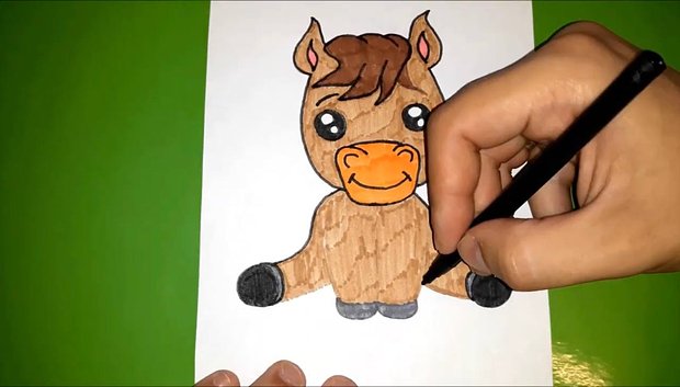 - раскрасьте лошадь цветными карандашами или фломастерами;