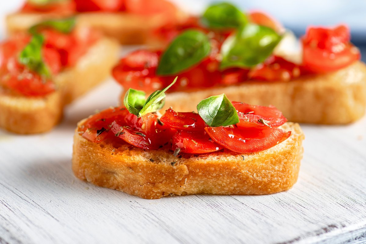 Помимо хлеба, ключевыми ингредиентами для брускетты являются: