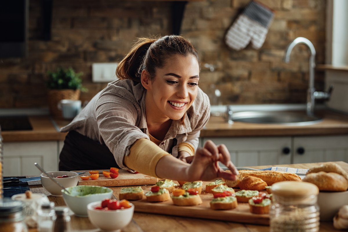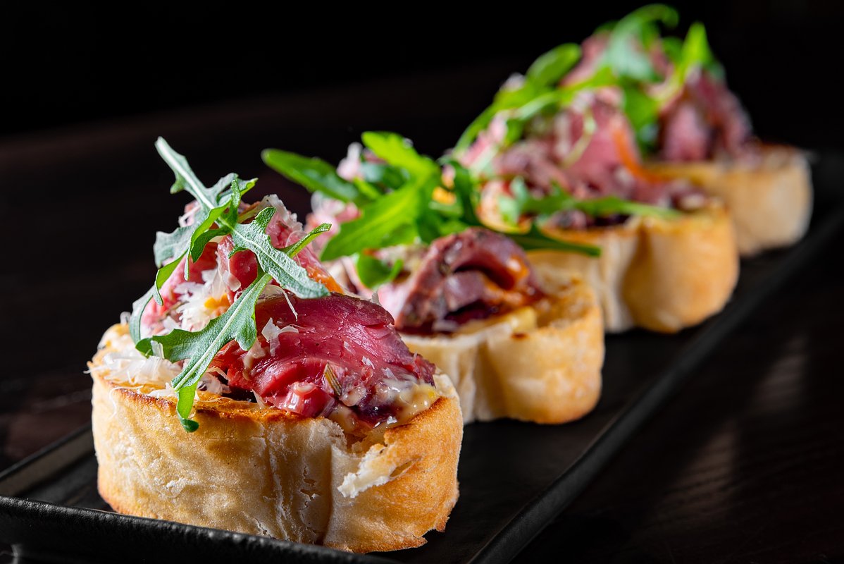 Сегодня брускетты популярны по всему миру с самыми разными вариантами топпингов. Классической начинкой остается измельченный и подсоленный томат в сочетании со свежим базиликом. Главный плюс такой закуски — простота в приготовлении: бутерброды с поджаренным хлебом делаются быстро и не требуют особых кулинарных навыков, при этом красиво смотрятся на столе. А еще брускетты легко адаптировать под разные вкусы: на одной тарелке могут соседствовать варианты с рыбой, мясом и овощами.