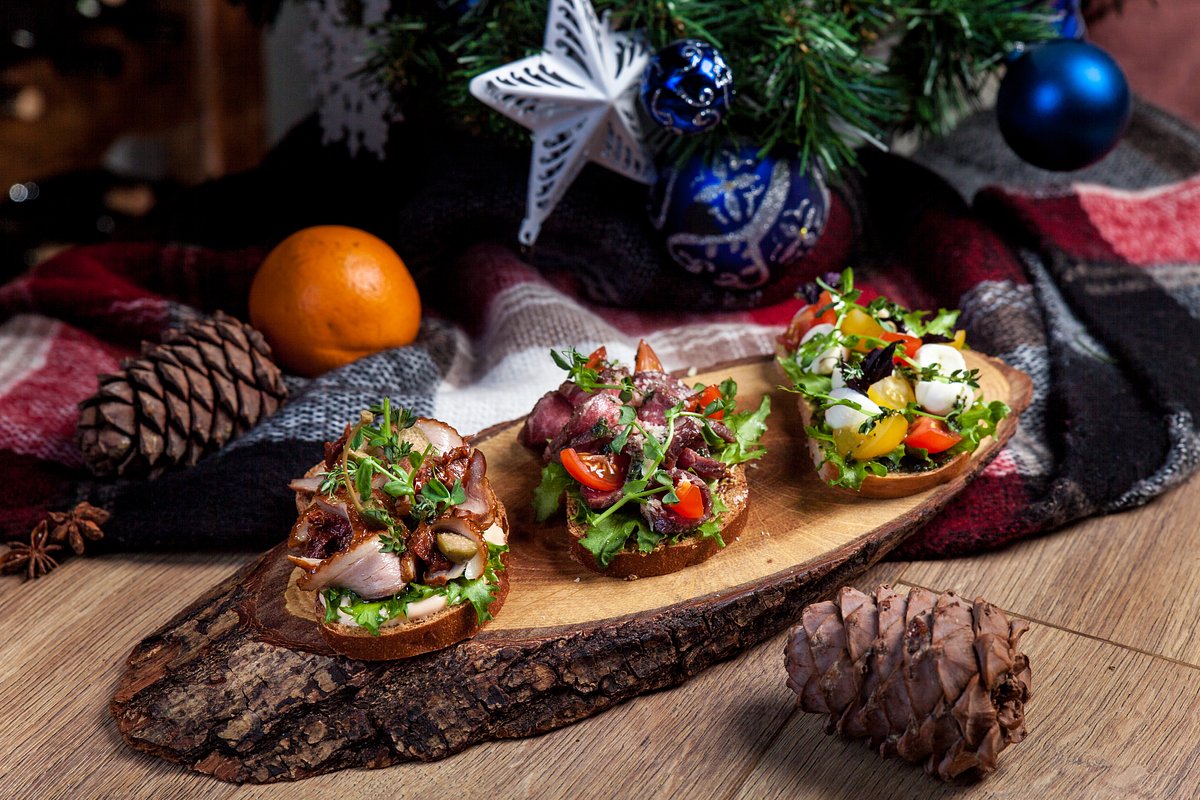 В качестве десерта отлично подойдут брускетты с клубникой, которые станут изюминкой новогоднего меню.