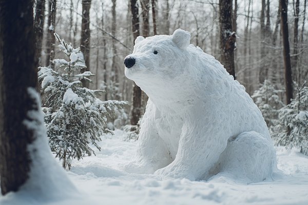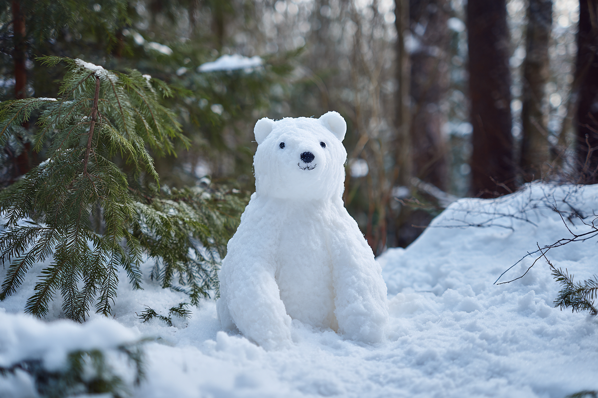 - отшлифуйте снег, придайте лапам нужную форму, при желании раскрасьте медведя — вам понадобятся черная и коричневая краски.