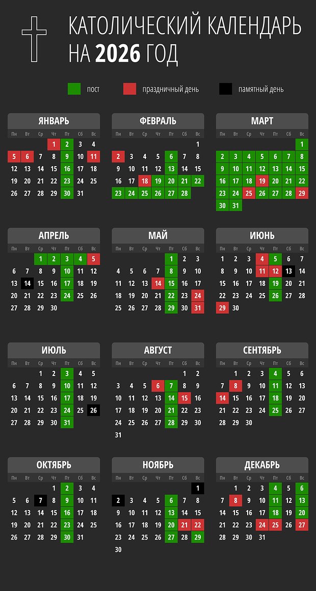Как и у представителей других христианских конфессий, у католиков главными праздниками считаются Пасха и Рождество. Однако каждый год они отмечают еще множество памятных дней и торжеств, традиции и даты которых во многом отличаются от православных. «Лента.ру» публикует календарь католических праздников на 2026 год и рассказывает о главных из них.