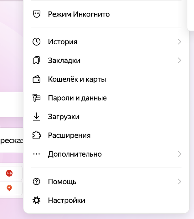 - Откройте браузер и разверните меню, кликнув по кнопке в верхнем правом углу. Обычно она выглядит как три точки или три черточки.