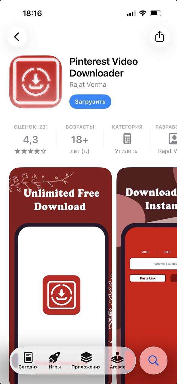 - Pinterest Video Downloader. Приложение, совместимое с айфонами и айпадами.