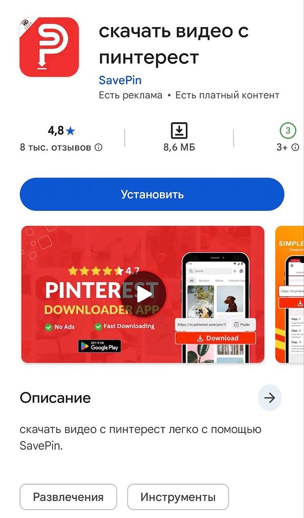 - SavePin. Android-приложение для скачивания, доступное в плеймаркете.