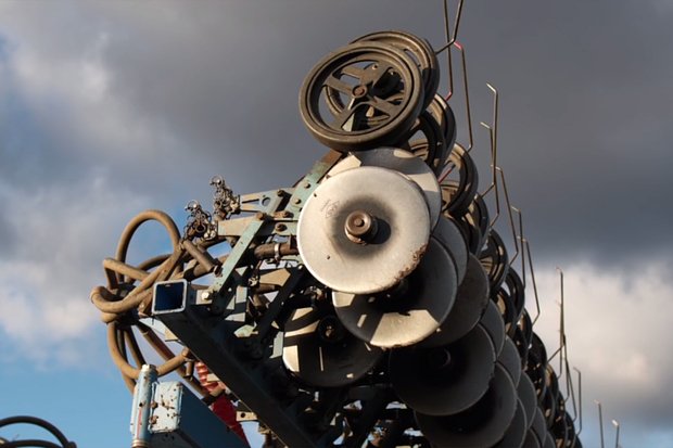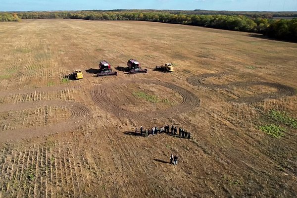 Динской район Краснодарского края, 5 ноября 2024 года. Жители станицы Пластуновская, работающие в агрохолдинге «Васюринский», выстроились на поле на фоне сигнала SOS! -- его пропахали на земле трактора, чтобы обратить внимание на угрозу закрытия производства в результате сомнительного судебного решения