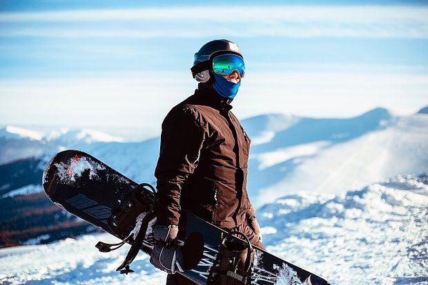 - Защита. Обязателен шлем и горнолыжная маска (защищает глаза от ветра, снега и ультрафиолета, улучшает видимость). По желанию также можно взять дополнительно защиту для наиболее уязвимых частей тела: спины, копчика и коленей.