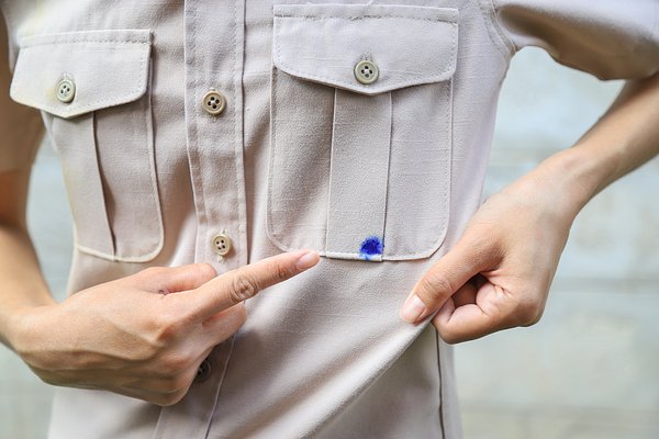 - Перед удалением следа от шариковой ручки подложите под запачканный участок кусочек светлой чистой ткани. Он впитает остатки чернил, и они не перейдут на другую часть одежды.