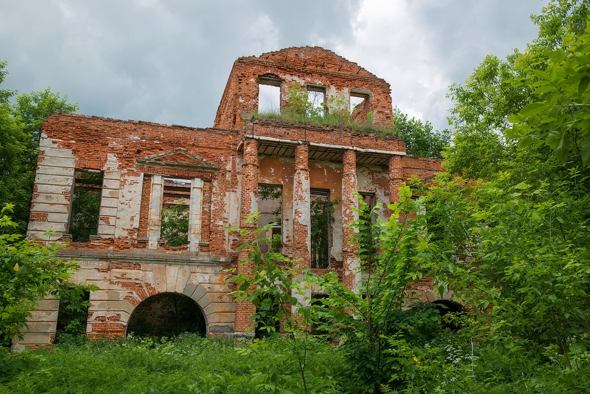«В 1839 году она была куплена помещиком Павлом Гороховым, тем самым, якобы для уплаты карточного долга которому граф Лев Толстой продал родовой дом в Ясной Поляне. В его собственности дом находился вплоть до 1918 года, когда усадьба была национализирована. В ней надолго поселились работники каширской птицефабрики. А когда они съехали, усадьба постепенно превратилась в живописные руины», — сетует Елкин.