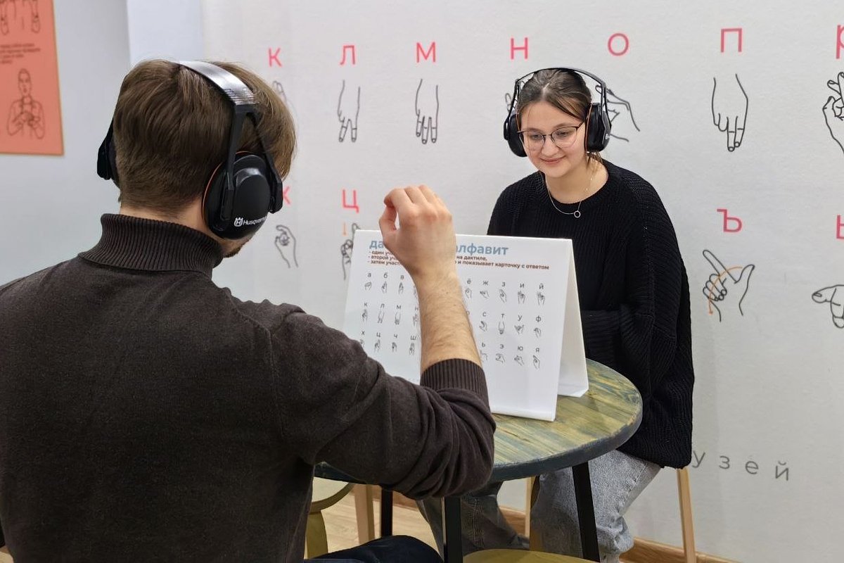 Есть в Москве музей, где не принято говорить вслух. Посетителям выдают звукоизолирующие наушники — и мир привычных звуков отступает. Остаются только взгляды, жесты и тишина, в которой все вдруг выглядит и чувствуется иначе. Посетителям придется научиться основам жестового языка, дактильному алфавиту, «слышать» вибрации тела и общаться без звуков.