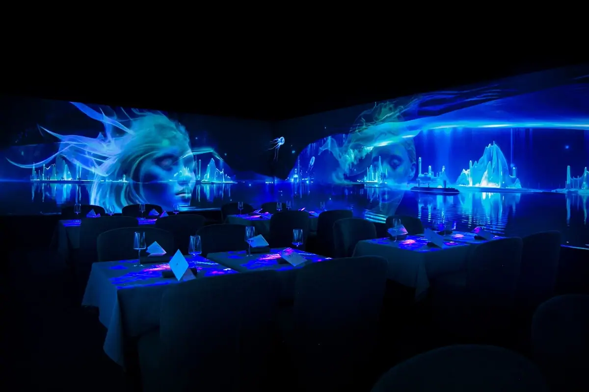 В гастрономическом театре SVET зрители сидят в зале, а вокруг них разворачивается полноценный спектакль: свет, 360-градусные проекции на стенах и столах, живой вокал. Весь персонал работает в наушниках и по секундомеру синхронно выносит гостям блюда, которые отыгрывают заявленную тему — например, Atlantis (шесть миров, объединенных затонувшей Атлантидой) или Guilty Show (спектакль о современных «богах» — эго, властях, деньгах, сексе). Каждый такой спектакль обойдется 25 тысяч рублей на человека.