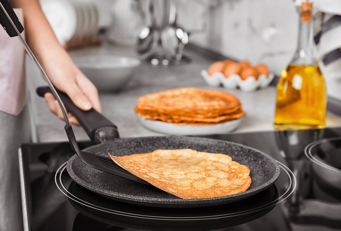 Можно не смазывать маслом, тогда калорийность блинов значительно снизится