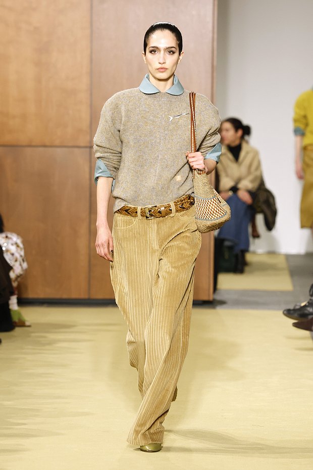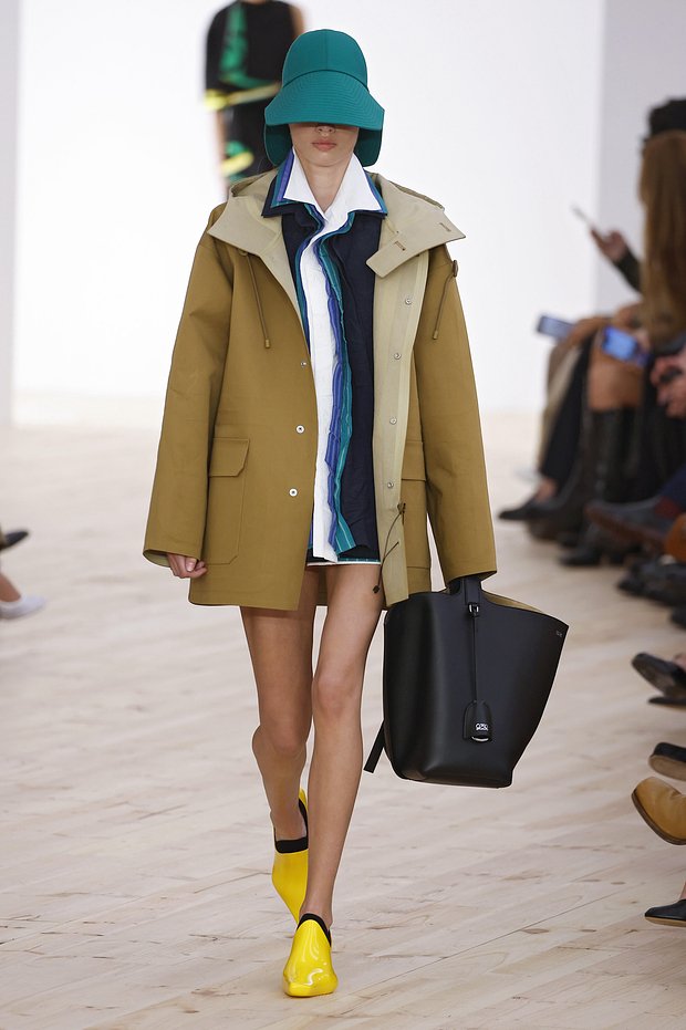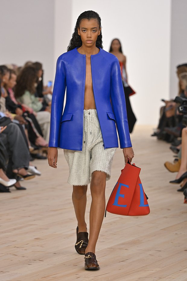 Яркую цветовую палитру можно подсмотреть и у Loewe. Стилисты бренда сочетают фиолетовый и оранжевый, лимонно-желтый и зеленый, оранжевый и желтый.