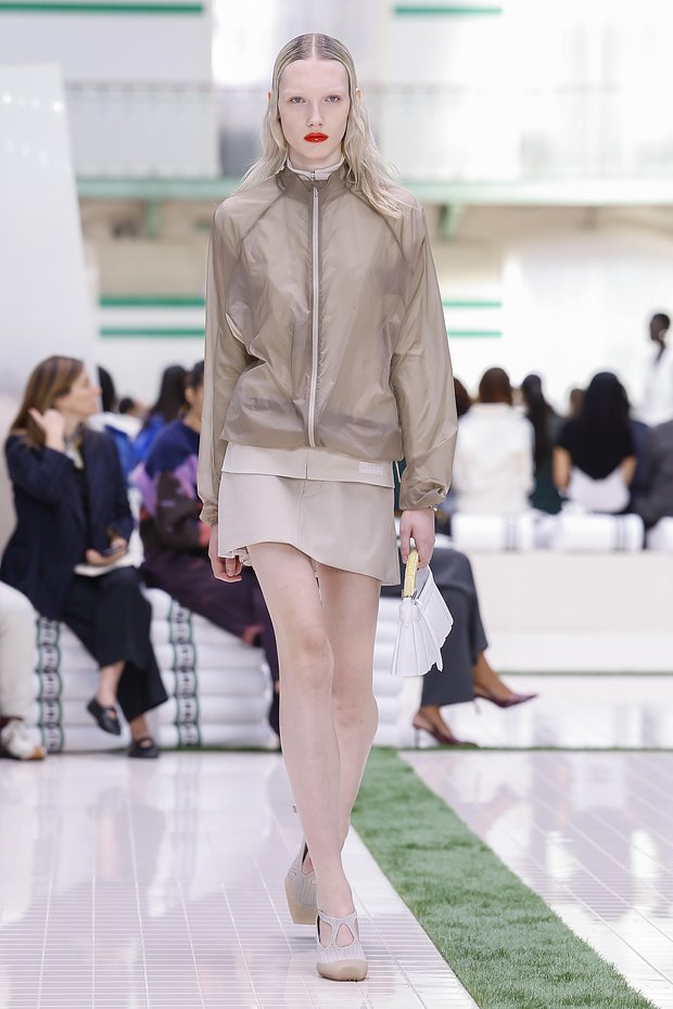 По словам стилиста, трендами нового сезона станут колорблок и яркие цвета. Примеры насыщенных монохромных образов можно увидеть на показе Lacoste.
