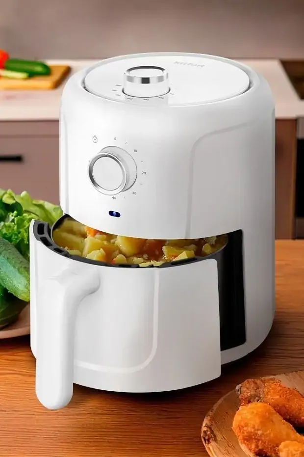 Такие модели имеют цельный корпус, внутри которого спрятаны вентилятор и нагревательный элемент. Панель управления обычно находится сверху, а из передней стенки корпуса выдвигается специальная чаша, в которую нужно класть продукты для приготовления.