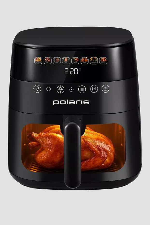 Мощный и вместительный аэрогриль, который позволяет быстро приготовить большие порции и отлично подходит даже для большой семьи. Позволяет устанавливать отложенный старт, а еще умеет подогревать пищу после завершения процесса приготовления.