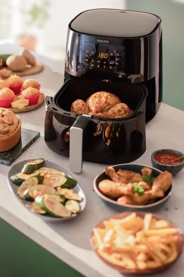 Речь идет о внутреннем объеме аэрогриля — это напрямую связано с количеством порций, которые можно приготовить за один раз. В зависимости от модели, объем может сильно различаться: маленькие модели на два-три литра подойдут для небольшой порции на одного человека, а вместительные на 12-17 литров — для полноценного приема пищи для большой семьи.