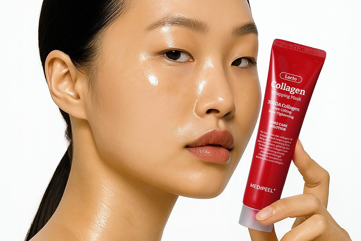 - Red Lacto Collagen Wrapping Mask. Увлажняющая маска с коллагеном, которая сужает поры и придает коже гладкость.