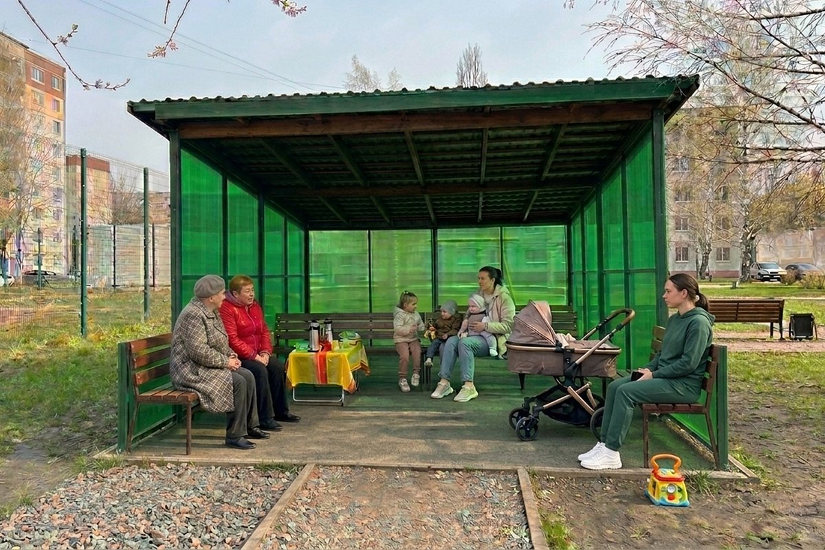 Грантовые деньги, как и мечтала Надежда Быченкова, пошли на материалы для беседки — поликарбонат, доски, краску. А дальше жители действовали уже сами: среди соседей собралась целая бригада: нашлись и строители, и маляры, и сварщики. От парней до пенсионеров — работали все вместе, с душой, ведь для своего же двора старались! Для беседки поставили стены, сколотили и покрасили скамейки, и Новый год отмечали в ней.