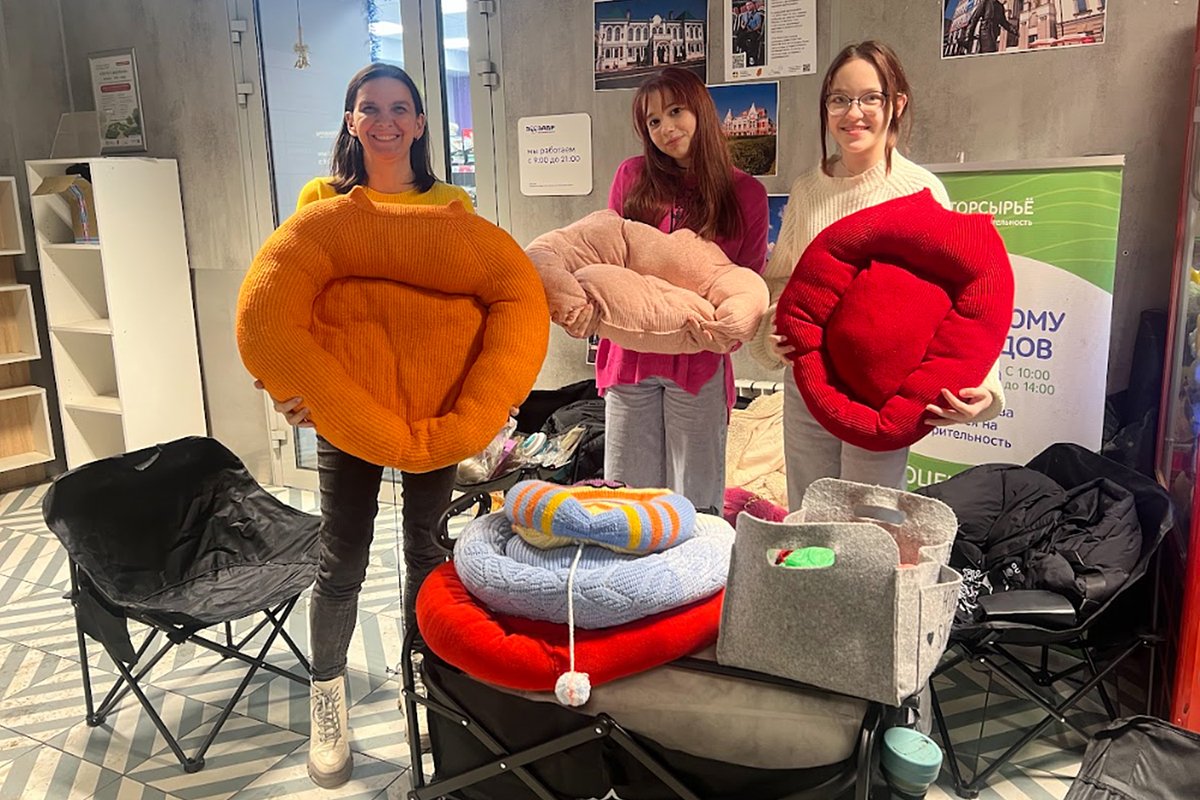«История получилась интересная, — с удовольствием вспоминает Светлана. — Представьте, приезжаем мы на очередной мастер-класс, выкатываем тележку, а на ней два огромных бесформенных мешка — один со свитерами, другой со старым синтепоном. Выглядит это просто пугающе. А через два часа та же тележка уже увозит аккуратную горку красивых разноцветных лежанок. Для участников это был эффект "вау"».