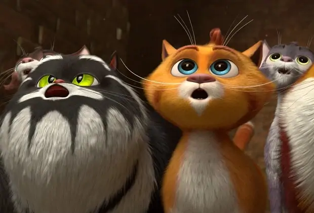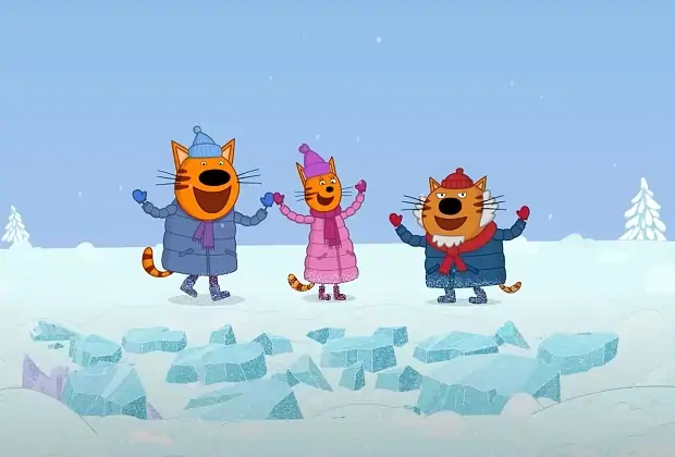 «Три кота. Зимние каникулы» (2024) — новогодние приключения трех обаятельных котят. Друзья Коржик, Компот и Карамелька знакомятся с первобытным котенком по имени Леденец и помогают ему отыскать семью.
