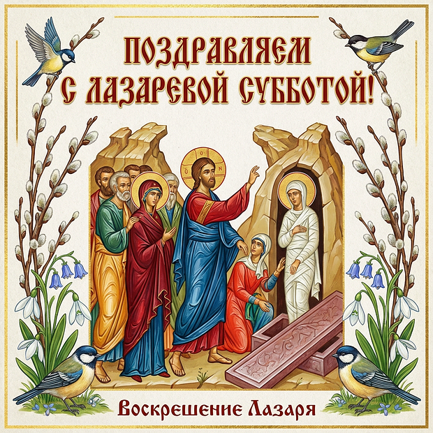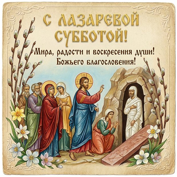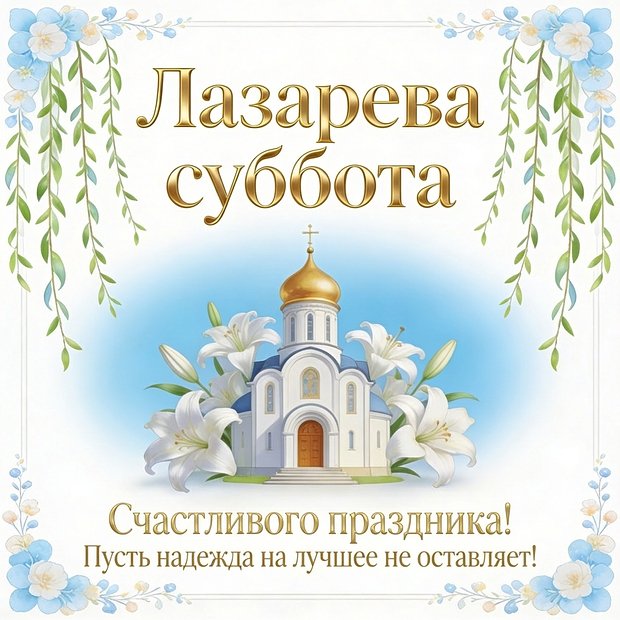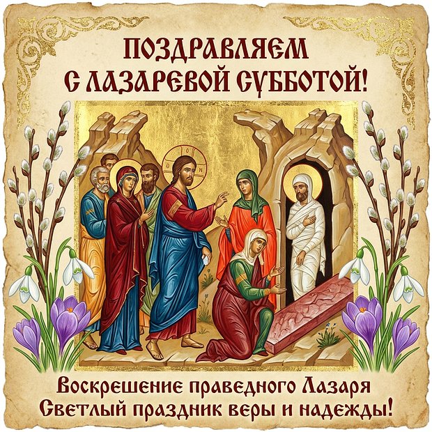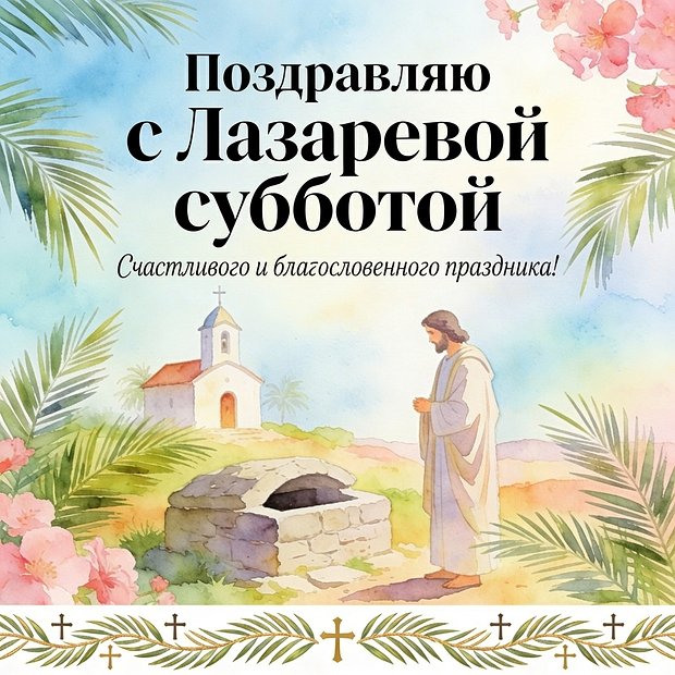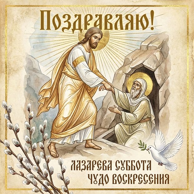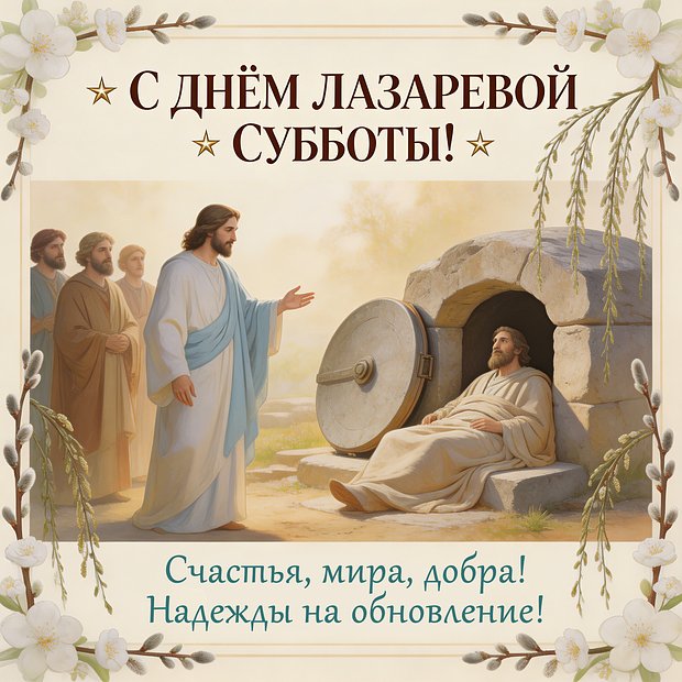 Лазареву субботу отмечают за день до Вербного воскресенья, и в 2026 году она выпадает на 4 апреля. В этот день вспоминают чудо воскрешения Лазаря — праведника, которого Иисус вернул к жизни через четыре дня после смерти. Этот день напоминает о надежде, обновлении, чудесах веры и вечной духовной жизни. «Лента.ру»: подготовила открытки с Лазаревой субботой, чтобы поздравить друг друга со светлым днем.
