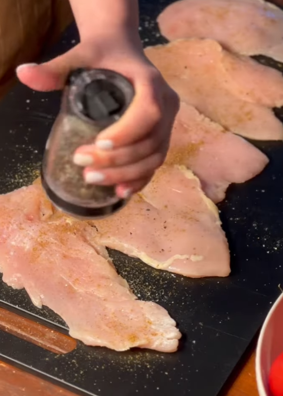 - Курицу разморозьте, натрите солью и специями по вкусу.