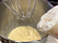 - Постепенно добавляйте в смесь муку и замешивайте тесто лопаткой. Долго замешивать не нужно, чтобы тесто не стало тяжелым.