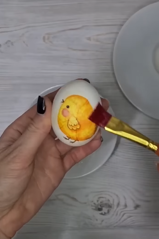 Украсить в технике декупаж Возьмите салфетку для декупажа, выберите подходящий рисунок, смажьте скорлупу вареного яйца белком, нанесите картинки, сверху закрепить рисунок белком