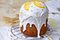 - Дайте куличам полностью остыть в формах, затем посыпьте сахарной пудрой или полейте глазурью.