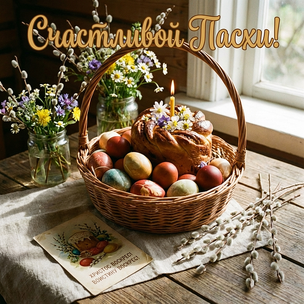 В этот день пусть все сложится так, чтобы вам было спокойно и радостно. И чтобы потом, оглядываясь назад, вы чувствовали: этот день был по-настоящему светлым. С Пасхой!