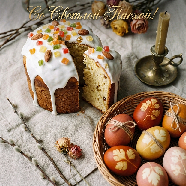 В Пасху все кажется возможным: и простить то, что не прощалось, и поверить в хорошее, даже если сил уже не было. Хочется пожелать вам не чудес, а простого человеческого тепла — такого, от которого легче дышится. Пусть рядом всегда будут люди, с которыми легко и надежно. И чтобы в вашем доме пахло сдобой не только по воскресеньям.