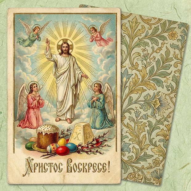 Винтажная открытка к Пасхе — Христос Воскресе!