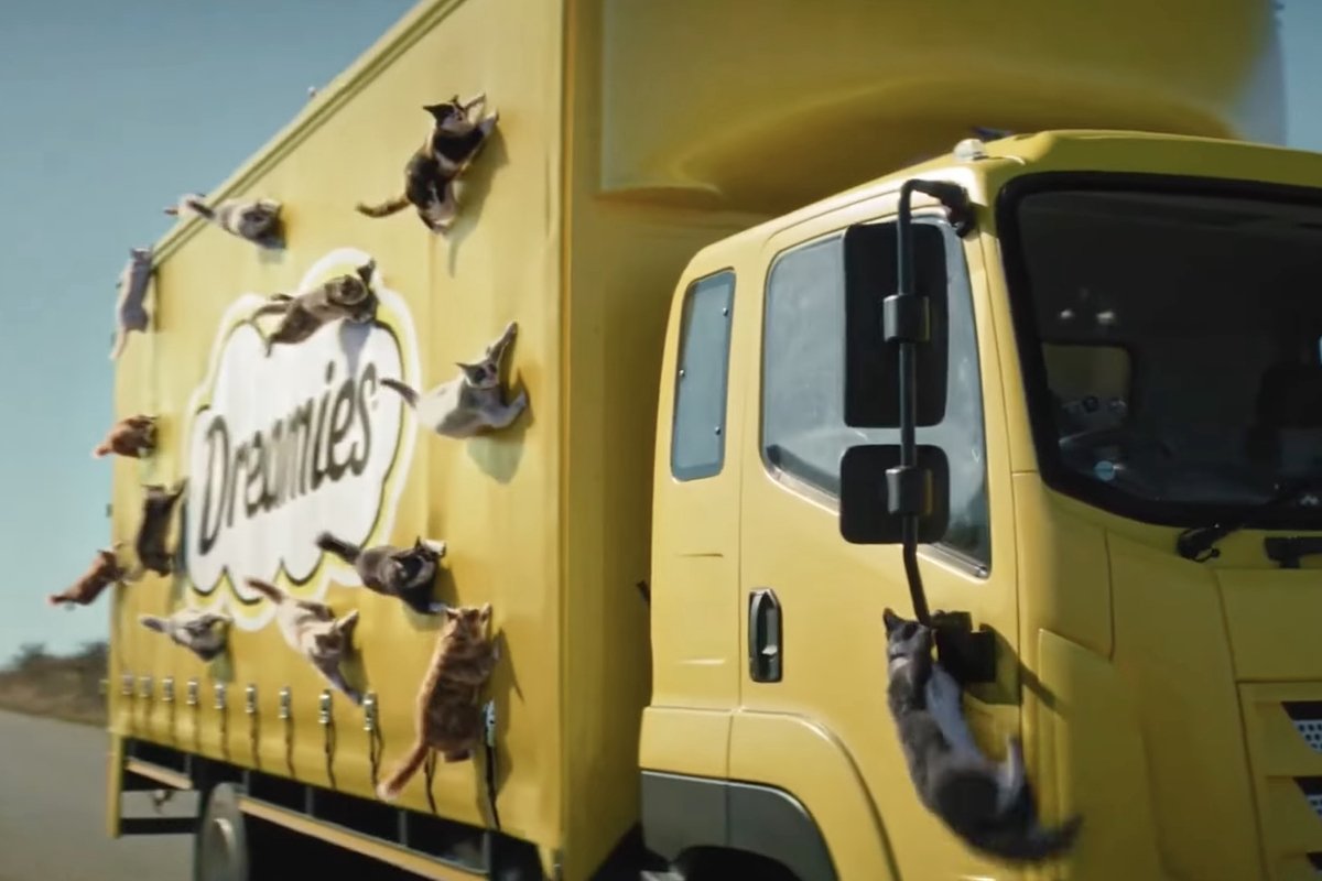 Также такой контент способствует продвижению товаров в pet-индустрии. К примеру, американский бренд Dreamies в апреле 2025 года представил новую рекламу с грузовиком и СGI-кошками (англ. Computer-Generated Imagery — изображения, созданные с помощью компьютера). На ней с десяток питомцев преследуют брендированный фургон. Под бодрый рок целеустремленные котики совершают разные пируэты, а в конце едят долгожданное лакомство в компании водителя фуры. К моменту выхода ролика бренд развесил по Лондону баннеры с трехмерными кошками: их можно было увидеть на щитах, водосточных трубах и крышах домов.