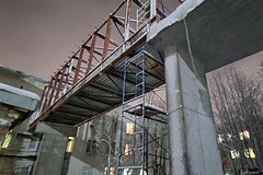 Как сообщили в Министерстве строительства Мурманской области, здание хирургического корпуса уже полностью возведено. «Подрядчик завершает монтаж вентфасада и витражей, выполняет отделку внутренних помещений», — отметила министр строительства региона Александра Карпова. Параллельно со строительством перехода рабочие залили фундаменты, пилоны, балки и опорные площадки. В настоящее время, по словам министра, идет монтаж металлокаркаса, который впоследствии будет утеплен и обшит металлокассетами.