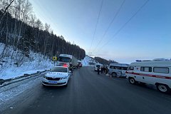 Авария произошла около 17:00 по местному времени на участке федеральной трассы «Байкал». По предварительным данным, микроавтобус столкнулся с двумя грузовиками.