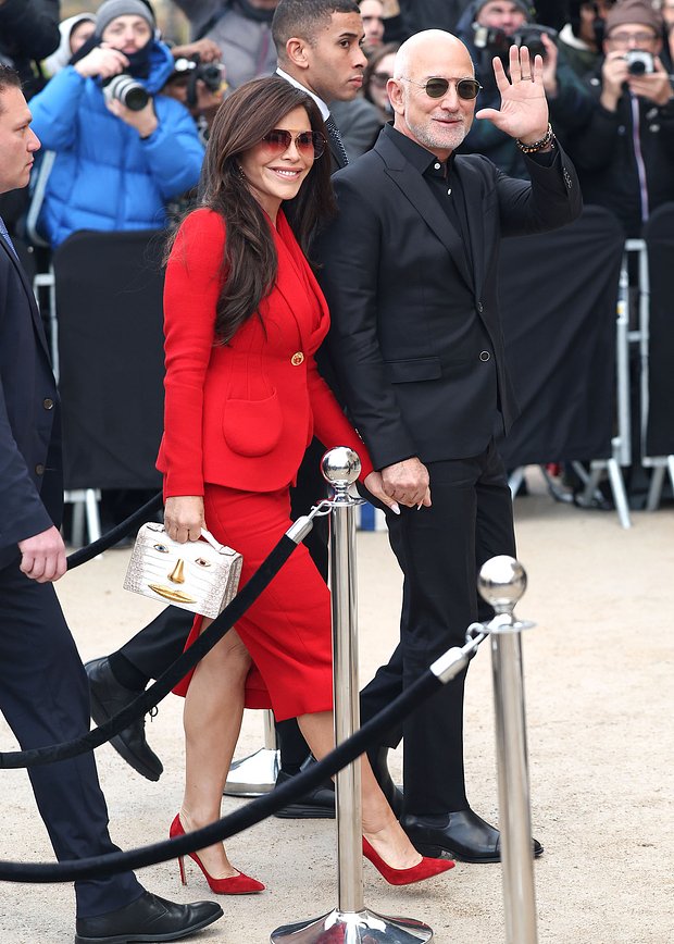 56-летняя репортерша предстала перед камерами в ярко-красном костюме, состоящем из жакета с золотистой пуговицей и облегающей юбки в разрезом сзади. При этом ее 62-летний супруг, основатель Amazon, попал в объективы фотографов в черной рубашке и классическом костюме.