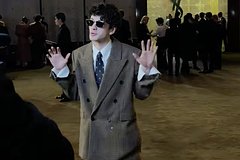 23-летнего актера запечатлели на показе бренда Saint Laurent. Он предстал перед камерой в коричневом брючном костюме в клетку свободного кроя, белой рубашке с галстуком и лакированных туфлях. Также он выбрал в качестве аксессуара солнцезащитные очки.