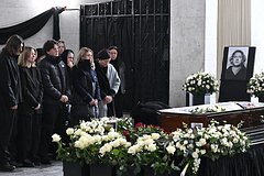 Его дочь сообщила, что причиной смерти стал оторвавшийся тромб. На церемонии собрались десятки человек, они несут цветы к Большому залу Троекуровского кладбища.