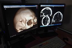 Как стало известно, мужчина без сознания поступил в больницу 24 января. Компьютерная томография выявила в его голове множественные металлические объекты. По словам заведующей рентгеновским отделением Ирины Парфеновой, обследование показало, что россиянин был ранен травматическим оружием, в результате чего пуля и осколки проникли в мозг. Ситуацию осложняло то, что пациент сутки не обращался за помощью и попал к врачам только после потери сознания.