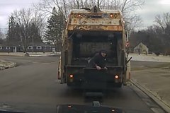 Мусорщик собирался опорожнить контейнер в грузовик, но заметил внутри мужчину. Как выяснилось позже, это был водитель, сбежавший после того, как его остановила патрульная машина. Скрываясь от преследования, он спрятался в баке. Патрульные потеряли его из виду и оцепили район.