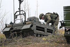В феврале стало известно, что российские военнослужащие разработали НРТК «Культиватор» с реактивной системой залпового огня. Машина несет блоки с 57-миллиметровыми снарядами.